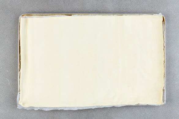 Den Backofen auf 220°C (200°C Umluft) vorheizen. Die Teige mit dem Papier nach unten auf zwei Backblechen ausrollen. Tipp: Für runde oder ovale Galettes die Teige entsprechend zuschneiden.