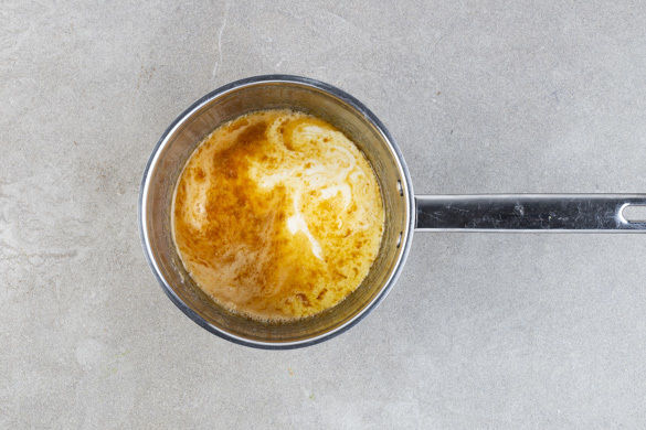 In einem kleinen Topf 6EL Zucker und 2EL Wasser langsam erhitzen, bis der Zucker eine hellbraune Farbe angenommen hat. 100ml Sahne, 50g Butter, 1 Prise Salz und 1 Rosmarinzweig hinzufügen und die Sauce 6–10Min. sanft köcheln lassen, bis sich der Karamell vollständig aufgelöst hat. Den Rosmarinzweig entfernen und die Sauce etwas abkühlen lassen.