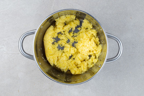 Die Kartoffeln mit 1EL Butter stampfen und kräftig mit Salz und Pfeffer würzen.