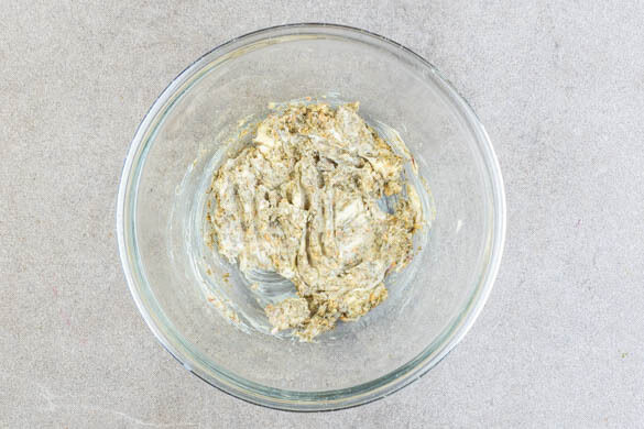 Den Backofen auf 180°C (160°C Umluft) vorheizen. 1½EL Butter in eine hitzebeständige Schüssel geben und in 3–4Min. im vorheizenden Ofen weich werden lassen. Dann mit einer Gabel die ½ der Gewürzmischung sowie 1 Prise Salz untermischen. 800ml Wasser in einem Wasserkocher aufkochen.