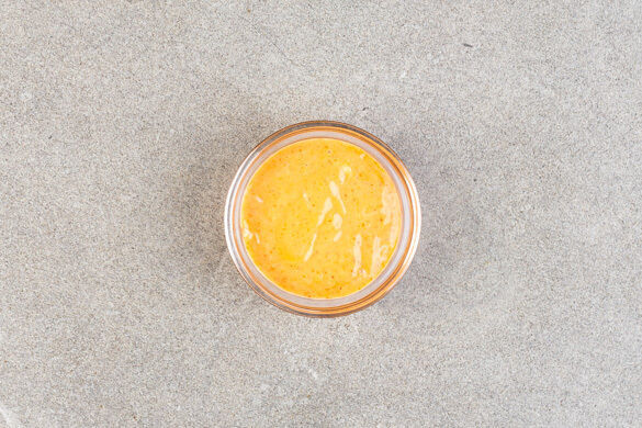 Die Sriracha-Sauce mit 2EL Mayonnaise zu einem Dip verrühren. Den Knoblauch schälen und fein würfeln. Die Brötchen aufschneiden, zu dem Gemüse auf das Backblech geben und in ca. 3Min. knusprig aufbacken.