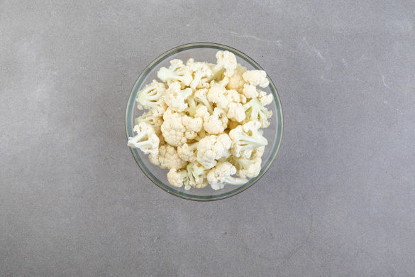 Den Backofen mit Grillfunktion oder Ober-/Unterhitze auf 250°C vorheizen. 1½ Blumenkohle in ca. 3cm große Röschen schneiden. Den Strunk grob würfeln. Tipp: Den übrigen Blumenkohl z. B. für einen Rohkostsalat verwenden.