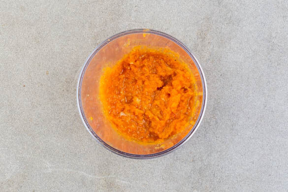 Die gerösteten Karotten mit dem gebratenen Knoblauch, 1TL Honig, 1TL Balsamicoessig, 1 kräftigen Prise Salz und 75–100ml Wasser in einem hohen Gefäß mit einem Stabmixer fein pürieren, das Püree mit Salz und Pfeffer abschmecken. Das Fleisch mit dem Ofengemüse und dem Karottenpüree anrichten und servieren.