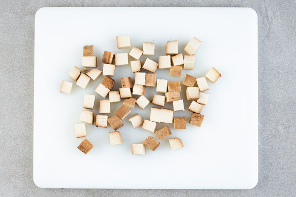 Den Tofu in ca. 1cm kleine Würfel schneiden.