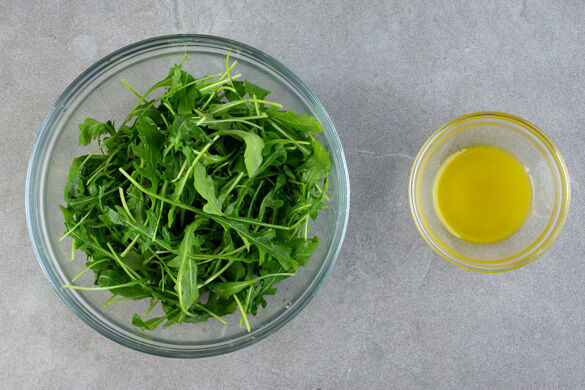 2EL Olivenöl mit 1 kräftigen Prise Salz verrühren und kurz vor dem Servieren mit dem Rucola vermengen. Das Fleisch in Tranchen schneiden, ggf. ausgetretenen Fleischsaft unter den Blumenkohl rühren. Das Fleisch mit dem Blumenkohl anrichten, nach Belieben mit dem Dip und etwas Rucola garnieren und mit dem restlichen Rucola als Beilagensalat servieren.