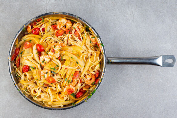 Pasta macht glücklich! An dieser Stelle erwarten wir keine Einwände. Dass sie schmackhaft ist, das setzen wir einfach mal voraus, wenn sie auch noch in Windeseile zubereitet ist, dann leuchten die Augen noch viel heller. Unsere heutige Kombination mit Garnelen, frischem Fenchel, fruchtigen Kirschtomaten und würzigem Estragon wird die ganze Tafel zum Funkeln bringen, da sind wir uns sicher ...