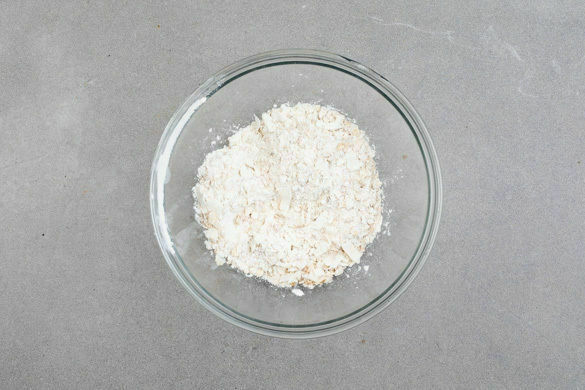 Den Backofen auf 180°C Umluft (200°C Ober-/Unterhitze) vorheizen. Das Mehl, 80g Haferflocken, die Kokosflocken, 50g Zucker und 1 Prise Salz in einer großen Schüssel mischen. Tipp: Aus den restlichen Haferflocken morgens ein Porridge zubereiten, mit einem Klecks Marmelade verfeinern und genussvoll in den Tag starten!
