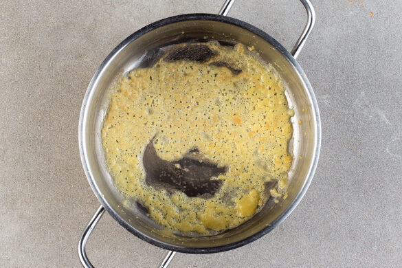 300ml Milch abmessen und bereitstellen. Den Emmentaler und den Hartkäse grob reiben. Den Knoblauch schälen, fein würfeln und in einem kleinen Topf mit 1EL Butter bei mittlerer Hitze erwärmen. Mit 1EL Mehl bestäuben und mit einem Schneebesen 1-2Min. verrühren, dabei darauf achten, dass die Sauce nicht zu braun wird.