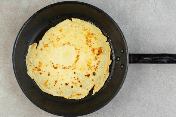 250g Mehl, 250ml Milch, 150ml Wasser, 2EL Olivenöl, die Eier und 1/2TL Salz zu einem glatten Teig verrühren und in zwei mittelgroßen Pfannen zu dünnen Pfannkuchen ausbacken. Dafür je 1 Kelle Teig mit 1EL Olivenöl bei niedriger bis mittlerer Hitze 1–2Min. anbraten, wenden und ca. 1Min. braten. Die Crespelle bis zum Servieren warm halten.