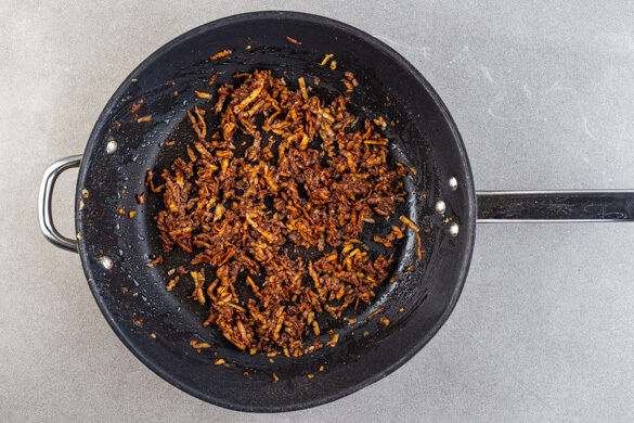 In einem mittelgroßen Topf ausreichend gesalzenes Wasser für die Nudeln zum Kochen bringen. Die 1/2 des Tempeh grob raspeln und in einer großen Pfanne mit 1–2EL Pflanzenöl bei starker Hitze unter Rühren 3–4Min. anbraten. Die 1/2 des Ketjap Manis einrühren und kräftig mit Pfeffer sowie 1/2TL Salz und 1 Prise Zucker würzen. Aus der Pfanne nehmen, die Pfanne aufbewahren.