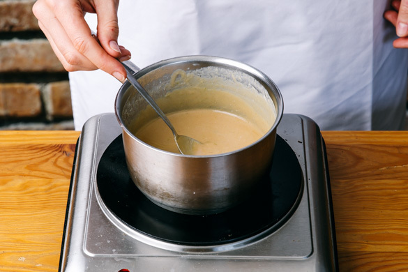 Die Limettenschale abreiben, dann die Limette halbieren und auspressen. Die restliche Kokosmilch mit der Erdnussbutter, dem Limettenabrieb und -saft, der Sojasauce und 50–80ml Wasser verrühren und in einem kleinen Topf bei niedriger Hitze 5–6Min. köcheln lassen, bis die Sauce eindickt.