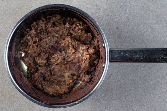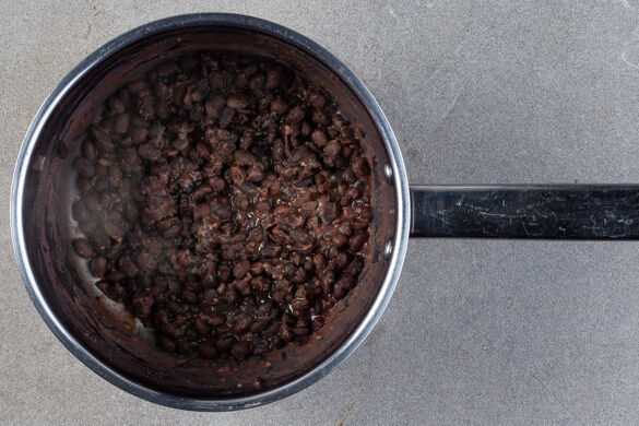 Den Knoblauch in einem mittelgroßen Topf mit 1EL Olivenöl bei mittlerer Hitze ca.1Min. anschwitzen. Die Bohnen mit 100ml Wasser und 1/2TL Salz dazugeben und abgedeckt ca. 10Min. sanft köcheln lassen. Die Flüssigkeit sollte nicht vollständig wegköcheln. Den Topf vom Herd nehmen.