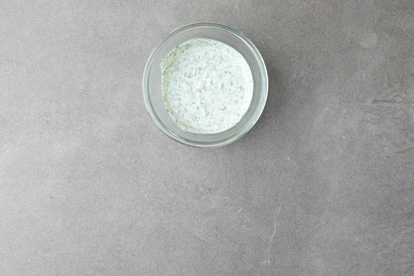 Den Dill samt Stängeln abzupfen und fein schneiden. Mit dem Joghurt und 1–2TL Zitronenabrieb vermischen. Den Dip mit Salz und Pfeffer abschmecken.