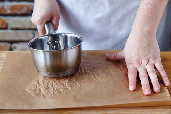 Das Fleisch mit etwas Küchenkrepp trocken tupfen, jeweils längs halbieren und zwischen Backpapier oder Frischhaltefolie z. B. mit einem schweren Topf gleichmäßig ca. 0,5 cm dünn flach klopfen. Von beiden Seiten mit Salz und Pfeffer würzen.