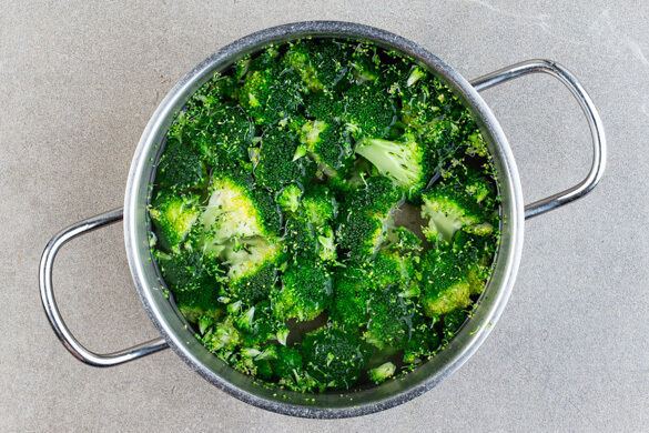 Den Brokkoli in das kochende Wasser geben und ca. 2Min. garen, dann in ein Sieb abgießen.