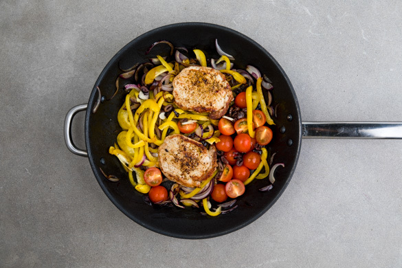 Für dieses Gericht werden die Schweinesteaks kurz in der Pfanne angebraten und anschließend in einer würzigen Paprika-Tomaten-Sauce mit Oliven gegart. Die dazu servierten Gnocchi werden mit frischem Salbei knusprig gebraten. Ganz viel Geschmack und Aroma bei kompromisslos schneller Feierabendküche!