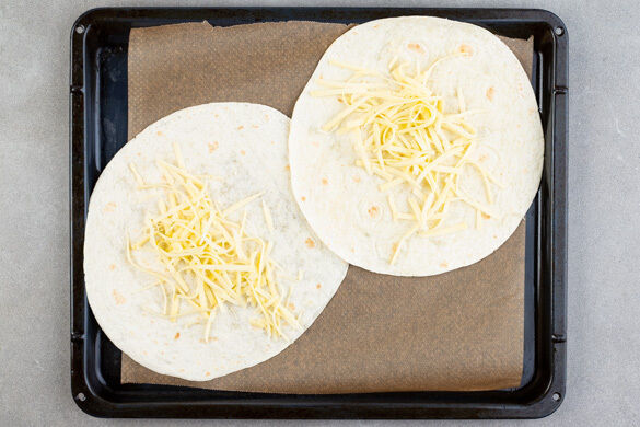 Nacheinander je 2 Tortillas mittig mit der 1/2 des Käses bestreuen und auf einem mit Backpapier ausgelegten Blech 2–3Min. backen, bis der Käse schmilzt. Mit der 1/2 der BBQ-Bohnen, etwas Guacamole und Salat belegen, dann die Tortillas von rechts und links über die Füllung klappen und fest aufrollen. Mit der übrigen Guacamole und den Limetten servieren.