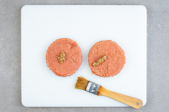 Die Pattys rundum mit dem restlichen Senf einpinseln oder einreiben.