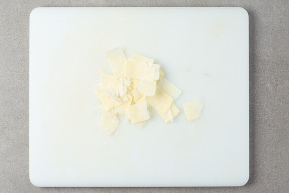 Den Käse mit einem Sparschäler oder einem Käsehobel in breite Streifen schneiden. Die Gemüsesauce auf tiefe Teller verteilen. Die Ravioli, die Wurststücke und die gebratenen Zwiebeln auf der Sauce anrichten, mit dem Käse garnieren und servieren.