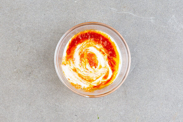 Den Joghurt mit der 1/2 der Harissa-Paste verrühren und nach Geschmack mit Salz würzen.