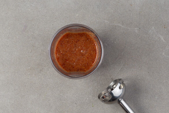 Die Orangen und die Cranberrys in einem hohen Gefäß mit einem Stabmixer 2–3Min. zu einer möglichst glatten Sauce pürieren.