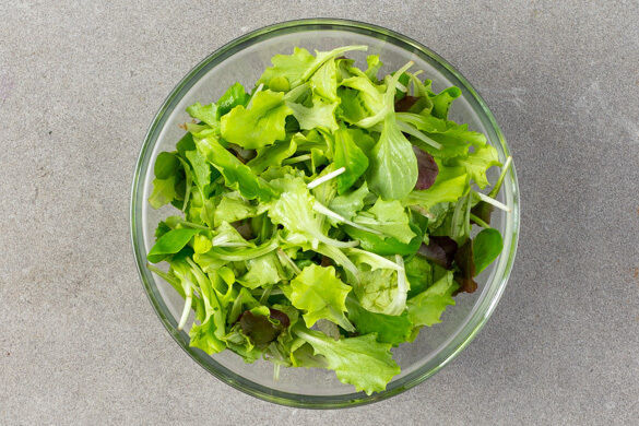 Den Salat kurz vor dem Servieren mit 1EL Olivenöl, 1EL Essig und je 1 Prise Salz und Pfeffer vermengen. Die Empanadas mit dem Salat anrichten und mit dem warmen Tomatendip servieren.