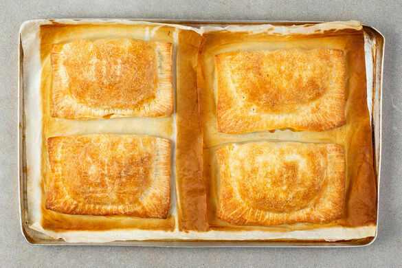 Die Empanadas im Ofen ca. 20Min. backen, bis der Teig goldbraun und knusprig ist. Je nach Ofen die Position der Bleche nach der Hälfte der Zeit tauschen.