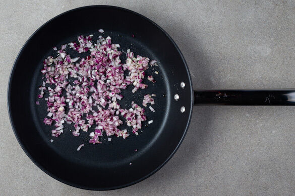 Die Zwiebeln in einer mittelgroßen Pfanne mit 1EL Pflanzenöl bei mittlerer bis niedriger Hitze ca. 10Min. sanft braten, bis sie sehr weich und leicht gebräunt sind.
