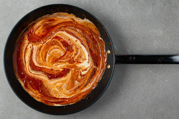 Heute steht das volle Verwöhnprogramm auf dem Plan, denn es gibt wahrlich etwas für alle Sinne: Die lecker marinierten Spieße mit Paneer, Paprika und Zwiebeln sind nicht nur eine Augenweide, sondern kitzeln auch die Geschmacksknospen. Die cremige Tomatensauce mit Tikka-Masala-Gewürz und Joghurt ist reine Aromatherapie, und das würzige Knoblauchbrot zum Dippen dazu lässt sich am besten mit den Fingern essen. Genuss pur!