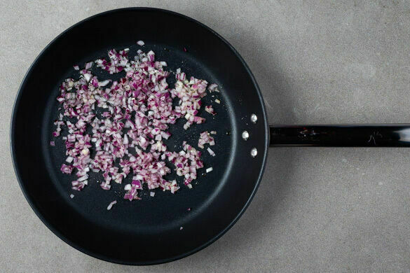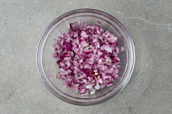 Die übrigen Zwiebeln schälen und fein würfeln.