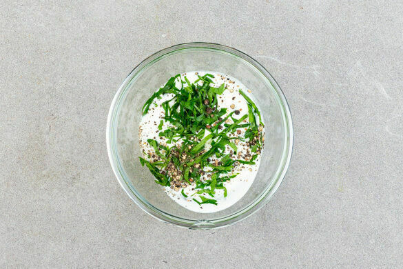 50ml Kochwasser abschöpfen und den Safran damit übergießen. Gut umrühren, damit sich die Aromen entfalten können, und ca. 5Min. einweichen lassen.
