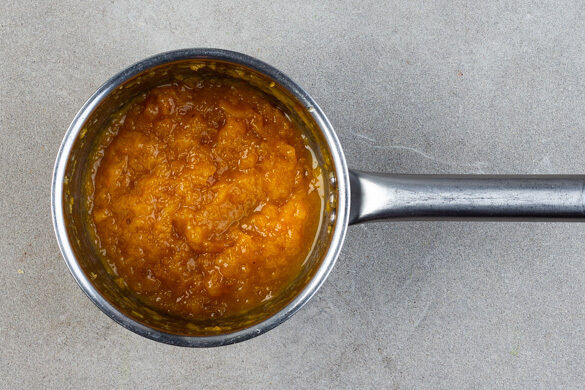 Die Aprikosen nach 15–20Min. vom Herd nehmen (das Wasser sollte jetzt um ca. 2/3 eingekocht haben) und mit einem Stabmixer zu einem Kompott pürieren. Nach Geschmack mit 1–2TL Zitronensaft und mehr Zucker verfeinern.