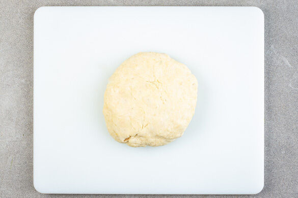 40g kalte Butter in ca. 1cm große Würfel schneiden, mit 225g Mehl, 1TL Backpulver, 2EL Zucker und 1 Prise Salz mischen. Mit den Händen zu einer krümeligen Masse verarbeiten, dann 130ml Buttermilch zugeben und untermischen. Eine Arbeitsfläche mit Mehl bestäuben, den Teig darauf vorsichtig und nicht zu lange kneten.