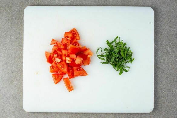 Die Tomaten fein würfeln. Den Sauerampfer in Streifen schneiden.