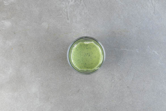 Das Basilikum samt Stängeln grob schneiden, die Minzeblätter von den Stängeln zupfen. Den restlichen Knoblauch schälen. Die Kräuter mit dem Knoblauch, der Mayonnaise und 1EL Zitronensaft in einem hohen Gefäß fein pürieren und die Kräutermayonnaise mit Salz abschmecken. Bei Bedarf mit etwas Wasser verdünnen.