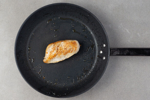 Das Fleisch trocken tupfen, mit Salz und Pfeffer würzen und in einer großen Pfanne mit 2EL Pflanzenöl bei mittlerer Hitze auf jeder Seite ca. 4Min. scharf anbraten. Abhängig von der Dicke des Fleisches kann die Garzeit variieren. Die Pfanne vom Herd nehmen und das Fleisch noch ca. 3Min. ohne Hitzezufuhr ruhen lassen.
