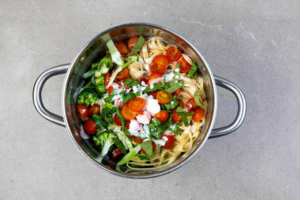 Die Pasta in das kochende Wasser geben und ca. 6Min. kochen.