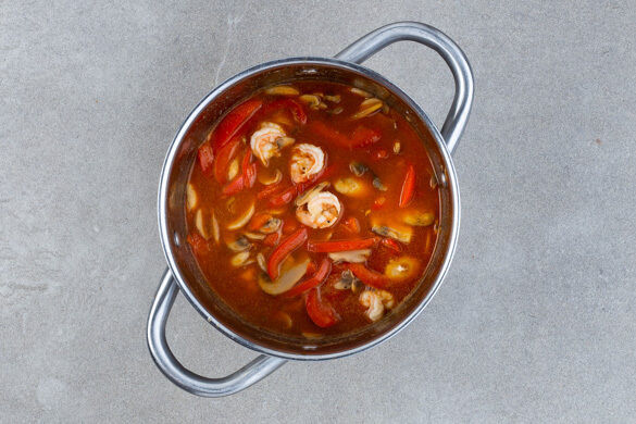 Das Geheimnis der Thai-Küche sind die leckeren Gewürzpasten und Saucen, die die Basis vieler Gerichte sind. So ist es auch bei dieser wohlschmeckenden Suppe, die ausgewogen säuerlich und würzig-pikant zugleich ist. Mit Champignons, Paprika und Koriander sowie saftigen Garnelen, dem fein-frischen Aroma von Limette und Zitronengras und duftendem Jasminreis als Beilage ein köstliches Mahl!