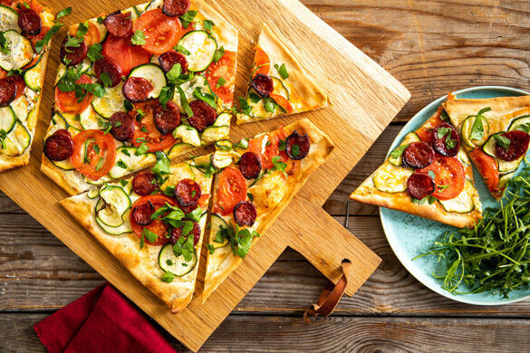 Flammkuchen mit Chorizo und Zucchini
