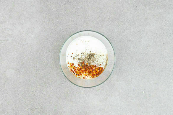 Den Backofen auf 240°C (220°C Umluft) vorheizen. In einem mittelgroßen Topf 800ml leicht gesalzenes Wasser für den Bulgur zum Kochen bringen. Den Joghurt mit der 1/2 der Harissa oder mehr nach Geschmack, 2 Prisen Salz und 1 kräftigen Prise Pfeffer glatt rühren und kühl stellen.