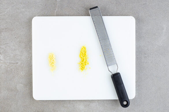 Den Backofen auf 230°C (210°C Umluft) vorheizen. Den Knoblauch und den Ingwer schälen und fein reiben.