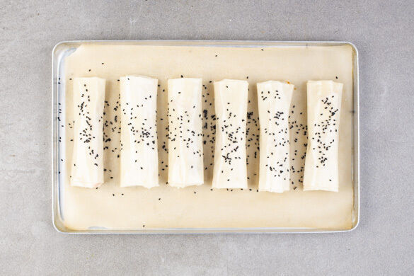 Die Frühlingsrollen mit den Nahtseiten nach unten auf ein mit Backpapier ausgelegtes Blech legen, dünn mit Pflanzenöl bepinseln und mit der 1/2 des Sesams bestreuen. Im Ofen in 10–15Min. goldbraun und knusprig backen. Aufpassen, dass die Frühlingsrollen nicht zu dunkel werden.