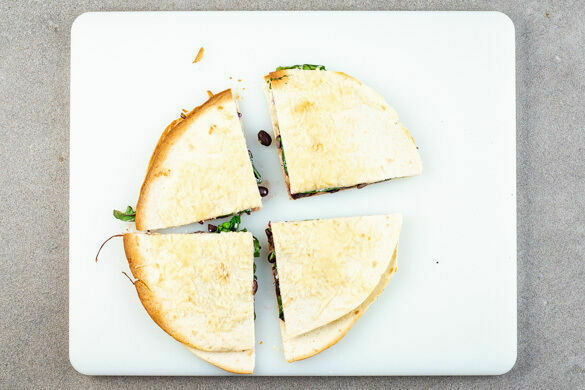 Die fertigen Quesadillas vorsichtig vierteln und noch warm mit der Salsa servieren.