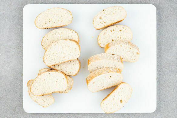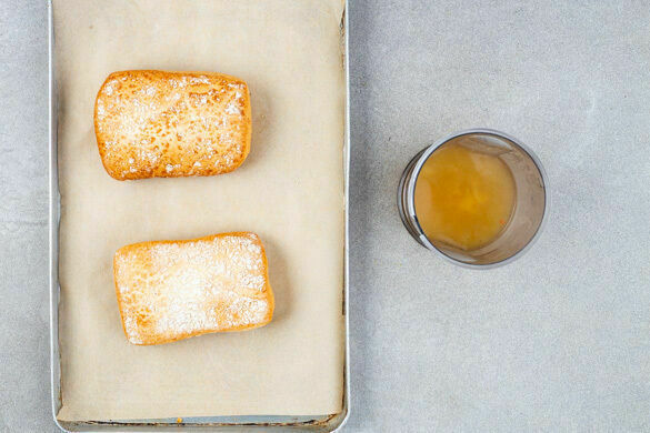 Inzwischen das Brühgewürz in 400ml heißem Wasser auflösen. Die Brötchen auf einem mit Backpapier ausgelegten Backblech 4–6Min. im Ofen aufbacken.