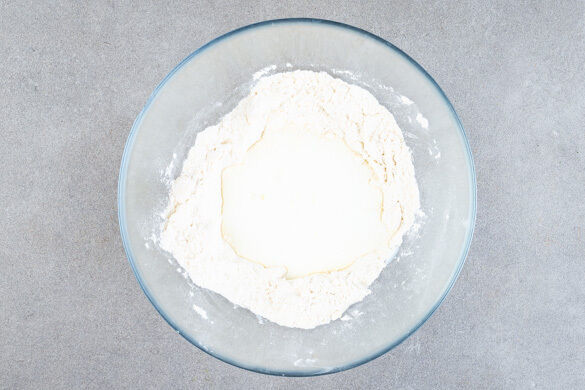 25g Zucker, 1TL Backpulver, 130g Mehl und 1 Prise Salz vermengen.