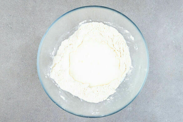 50g Zucker, 2TL Backpulver, 260g Mehl und 1 Prise Salz vermengen.