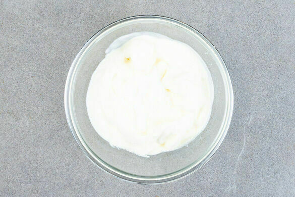30g Butter mit den Fingerspitzen in den Mehl-Zucker-Mix einarbeiten, sodass eine gleichmäßige, bröselige Textur entsteht. 225g Buttermilch dazugeben und locker zu einem groben Teig verkneten. Nicht zu lange kneten, sonst wird der Teig zu fest.
