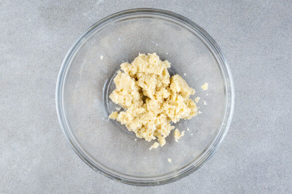 200g Mehl mit 2TL Backpulver, dem Zimt sowie 1 kräftigen Prise Salz vermengen und beiseitestellen. 70g der weichen Butter mit einem Handrührgerät in ca. 2Min. cremig rühren. 150g Zucker und den Vanillezucker hinzufügen und ca. 3Min. mit dem Handrührgerät rühren, bis die Butter-Zucker-Mischung locker und cremig ist.