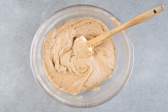 Die Eier einzeln unter die Butter-Zucker-Mischung rühren, anschließend langsam 70g Pflanzenöl unterrühren. Die 1/2 der Mehl-Backpulver-Mischung hinzufügen, mit einem Holzlöffel unterrühren, dann mit der restlichen Mehl-Backpulver-Mischung ebenso verfahren und den Teig glatt rühren.