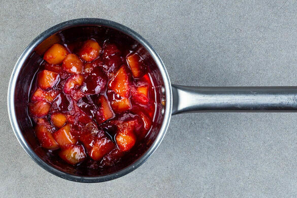 Die Nektarinen in ca. 2cm große Stücke schneiden, die Steine entfernen. Übrige Pflaumen ggf. ebenfalls in ca. 2cm große Stücke schneiden. Die Früchte samt ausgetretenem Saft in einen kleinen Topf geben, 4EL Zucker sowie 4EL Wasser hinzufügen und bei mittlerer Hitze 5–7Min. einköcheln lassen, bis die Früchte weich sind, dabei gelegentlich umrühren.